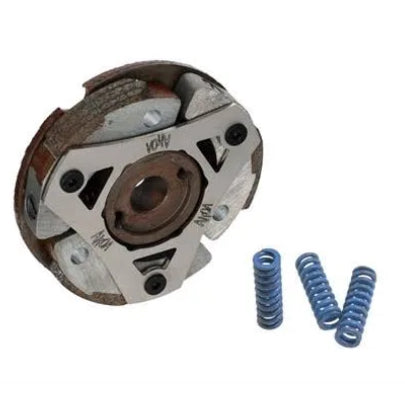 Die Akoa 3-Backenkupplung für Puch Maxi E50 Motoren ist mit leichteren Aluminiumarmen ausgestattet. Ideal als Ersatzkupplung für 1 Gang Motoren, die mehr Kraft in unteren Drehzahlbereichen erhält. Mit geschraubter Verstärkungsplatte für sicheren Halt und bündiger Befestigung. Enthält blaue Kupplungsfedern für 15% mehr Power und 2 Bohrungen für einen Kupplungsabzieher. Wichtig: Vor Einbau in Getriebeöl einlegen für optimale Leistung.