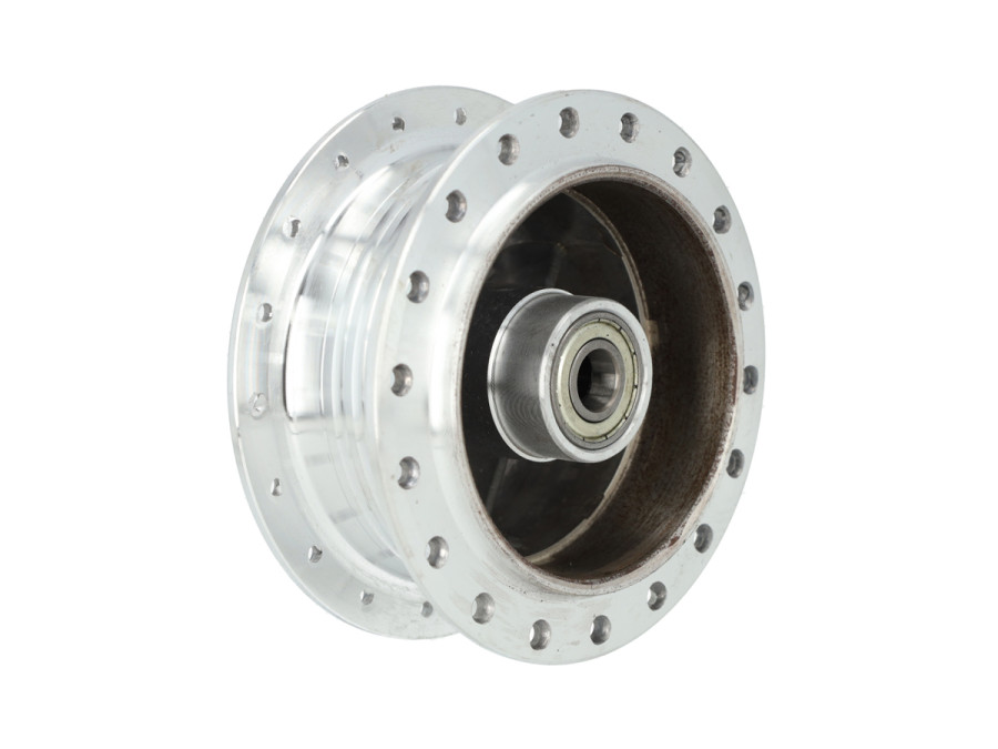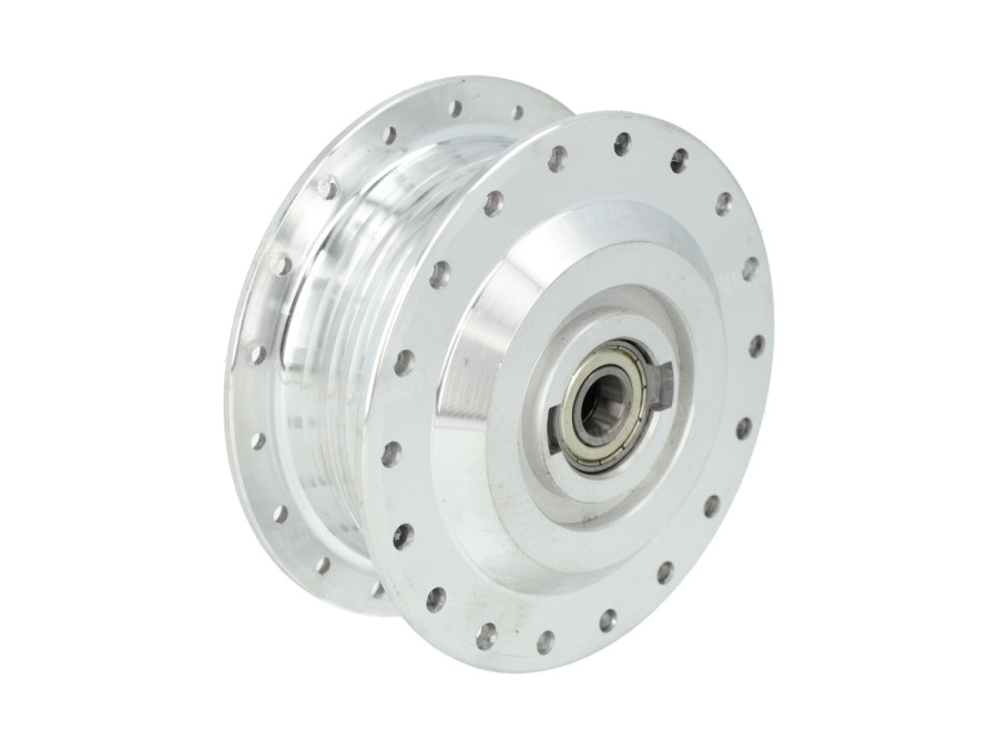 Die Radnabe für Speichenrad Puch Maxi vorne ist aus Aluminium gefertigt und verfügt über polierte Oberflächen. Mit einem 12mm Lager und einer 12mm Achse ist sie perfekt für die Puch Maxi S / N / K / X30 geeignet. Bestellen Sie die passende Achse für Gussräder separat.